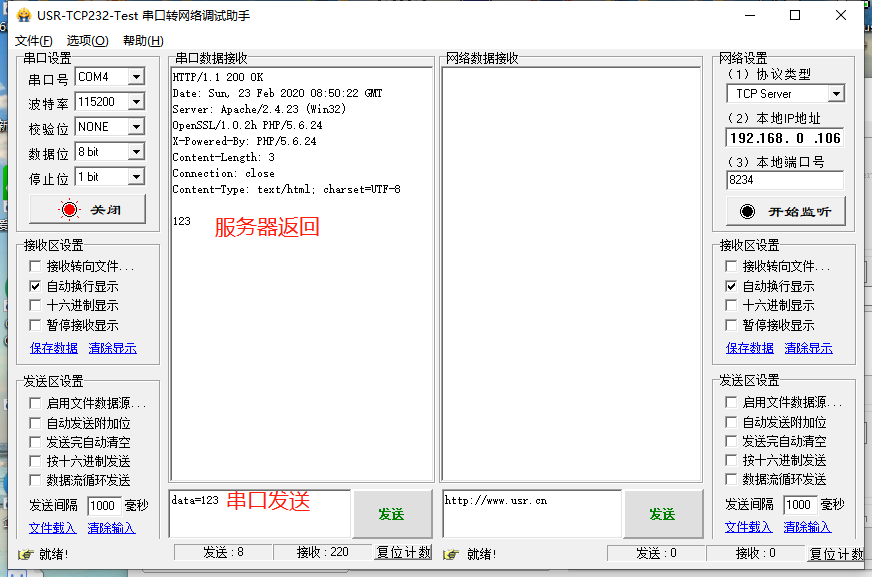 HTTPD_Client主要應(yīng)用于網(wǎng)頁(yè)服務(wù)器,串口服務(wù)器發(fā)送的數(shù)據(jù),可以透?jìng)鞯骄W(wǎng)頁(yè)服務(wù)器接收。網(wǎng)頁(yè)服務(wù)器返回?cái)?shù)據(jù)給串口服務(wù)器的串口。用于監(jiān)控串口設(shè)備。