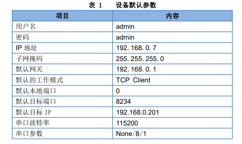 二.設(shè)備默認參數(shù)