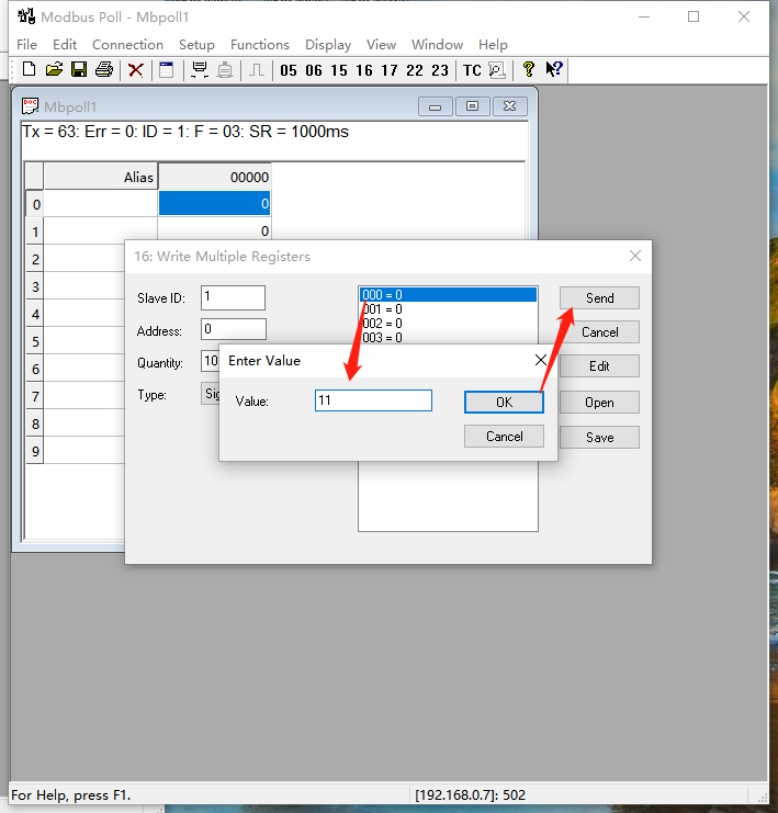 12、在相應(yīng)位置即可給slave(相當(dāng)于自己的終端設(shè)備)對(duì)應(yīng)的數(shù)據(jù)點(diǎn)寫數(shù)據(jù)。