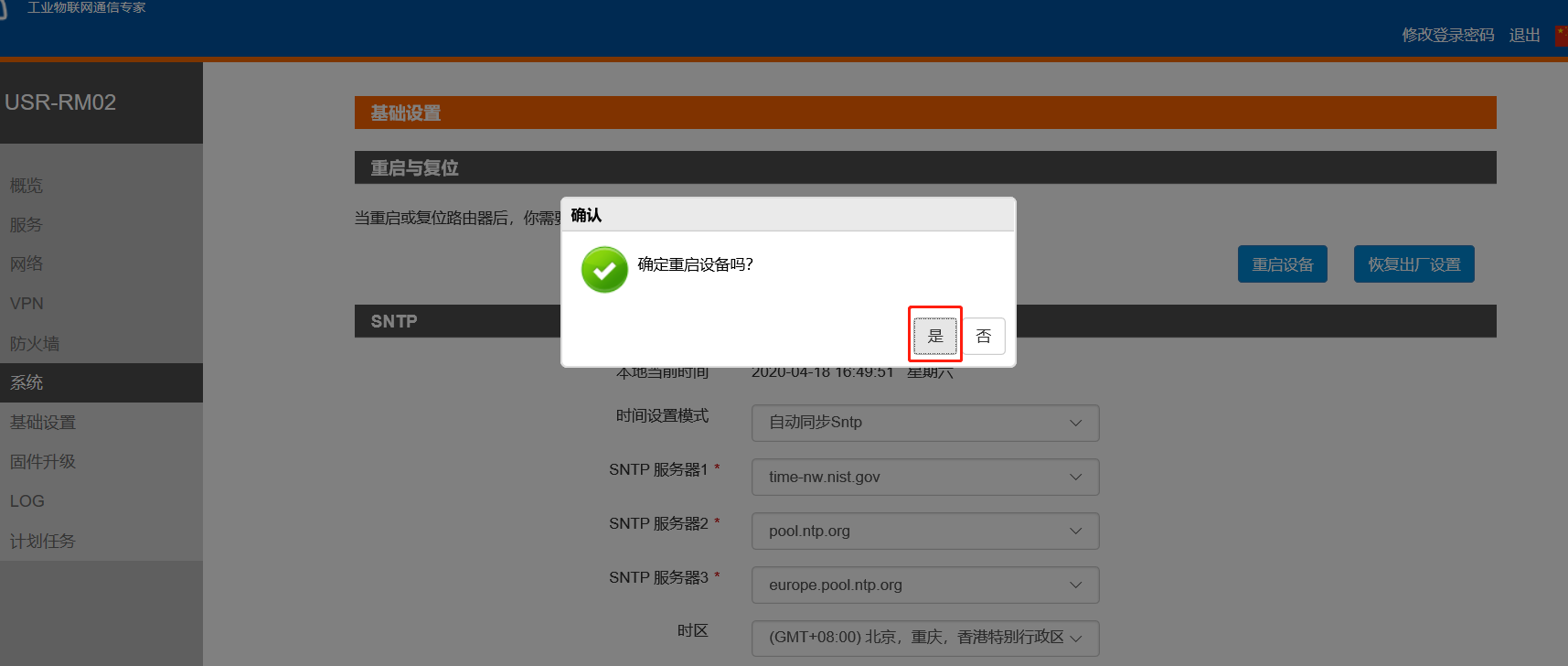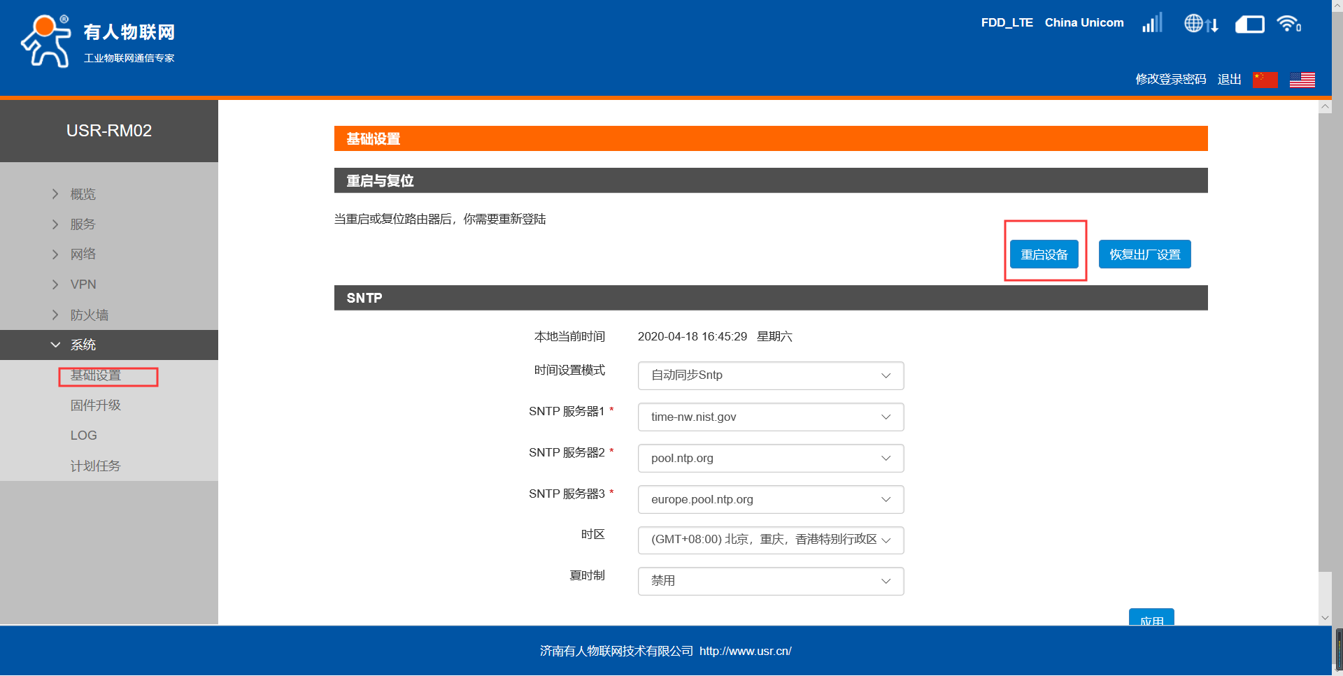 3、設(shè)置完參數(shù)后點(diǎn)擊系統(tǒng)--基礎(chǔ)設(shè)置--重啟設(shè)備。
