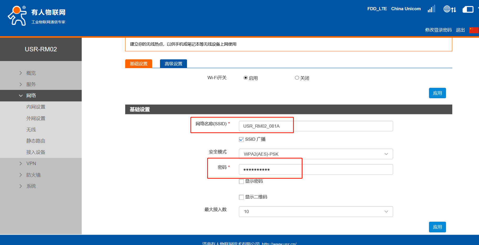 1、進(jìn)入網(wǎng)絡(luò):進(jìn)入修改界面,SSID即WiFi信號(hào)的名稱(chēng),默認(rèn)為設(shè)備型號(hào)+MAC后4位。