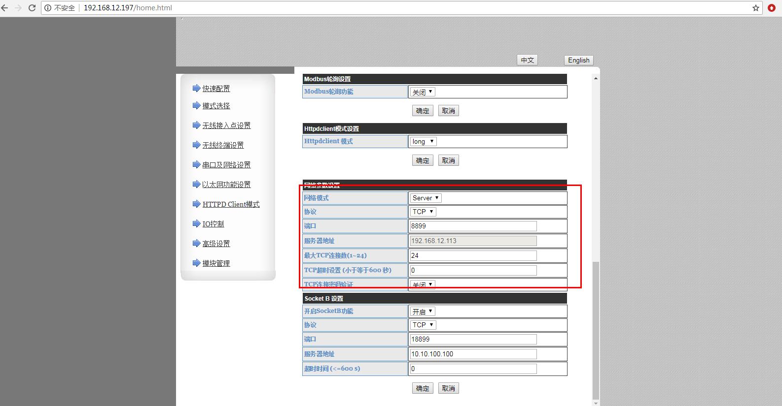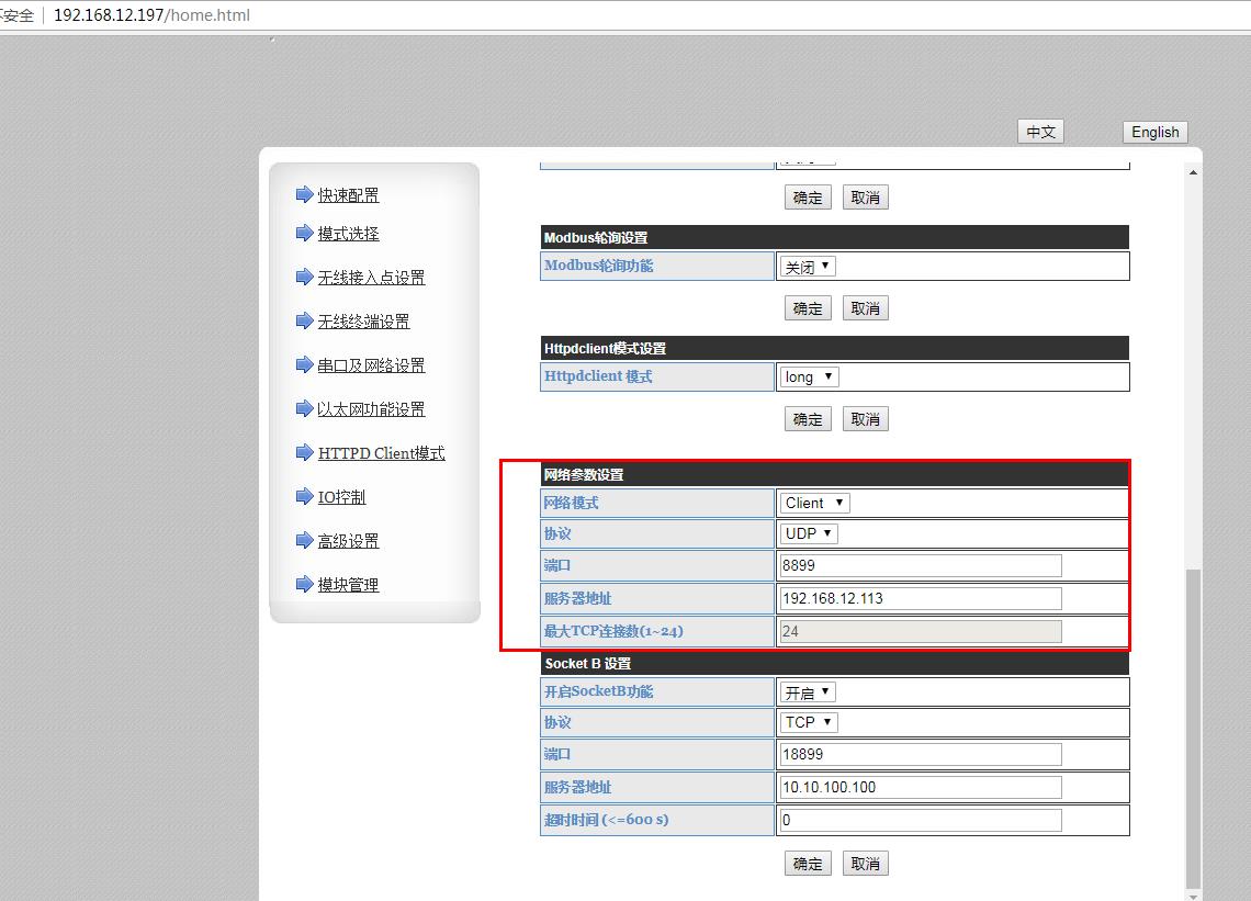 用USR-WIFI232-B2的Ip 登錄USR-WIFI232-B2的網(wǎng)頁,然后修改B2的串口參數(shù)。測試4種工作模式下,串口和網(wǎng)絡(luò)的數(shù)據(jù)透傳。