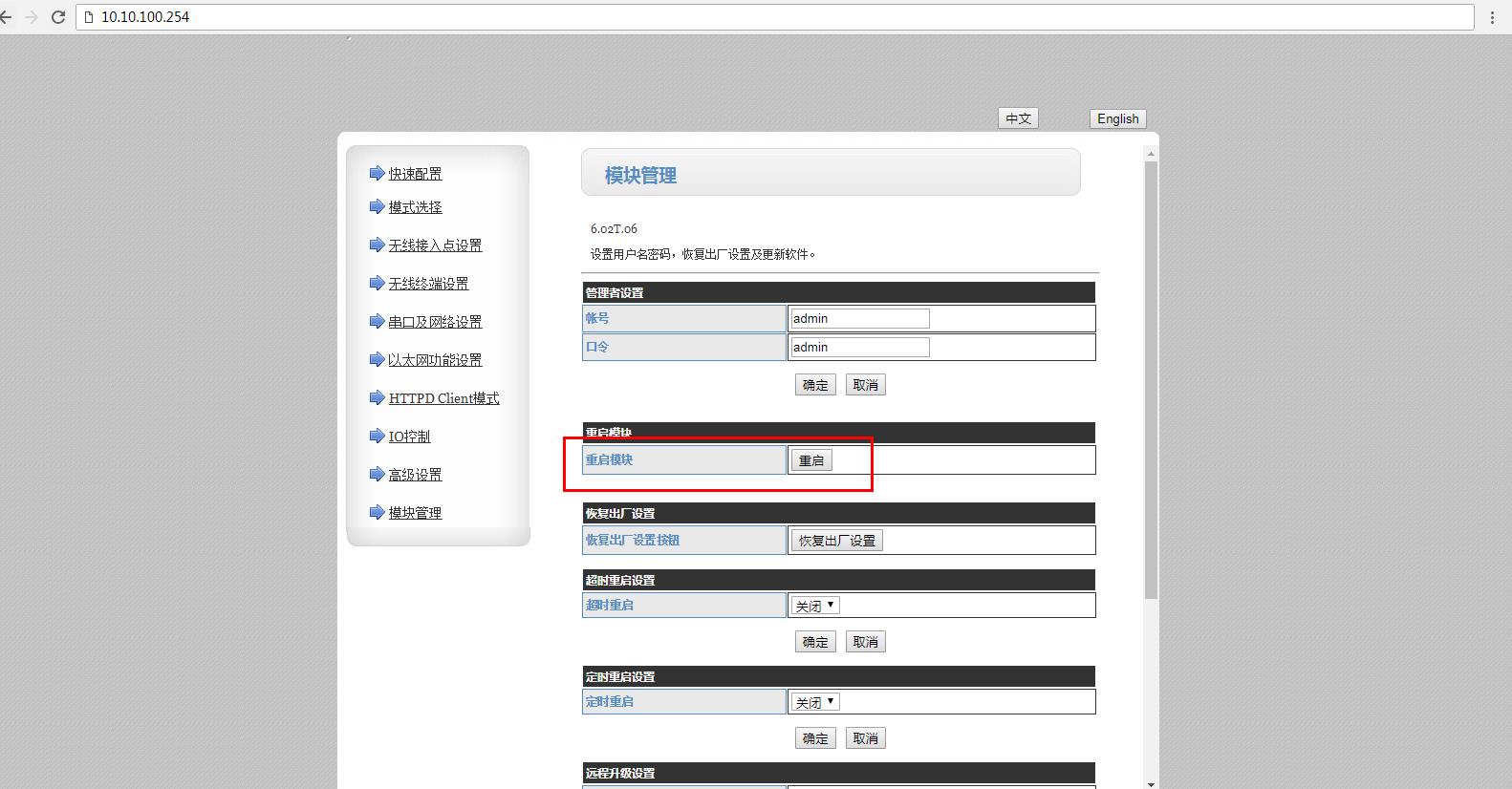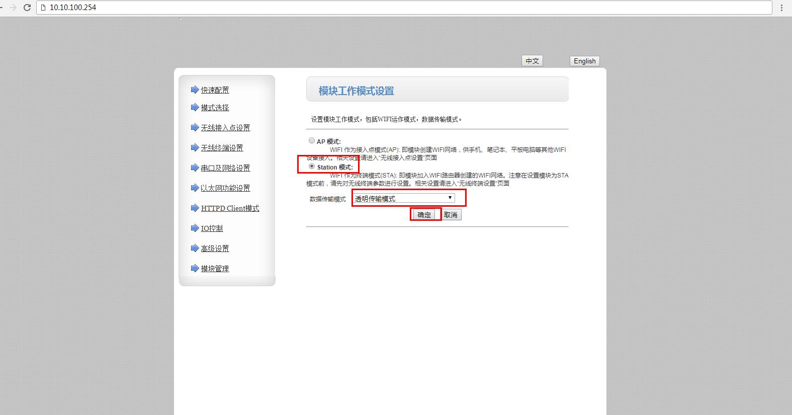 USR-WIFI232-B2默認(rèn)Ip是10.10.100.254,用這個Ip,在瀏覽器輸入,進(jìn)入USR-WIFI232-B2的內(nèi)置網(wǎng)頁,可以對B2模塊進(jìn)行參數(shù)查看和參數(shù)配置。登錄用戶名和密碼都是admin。