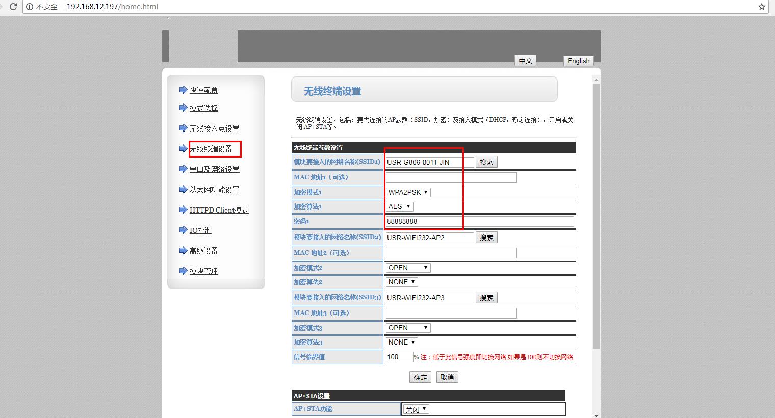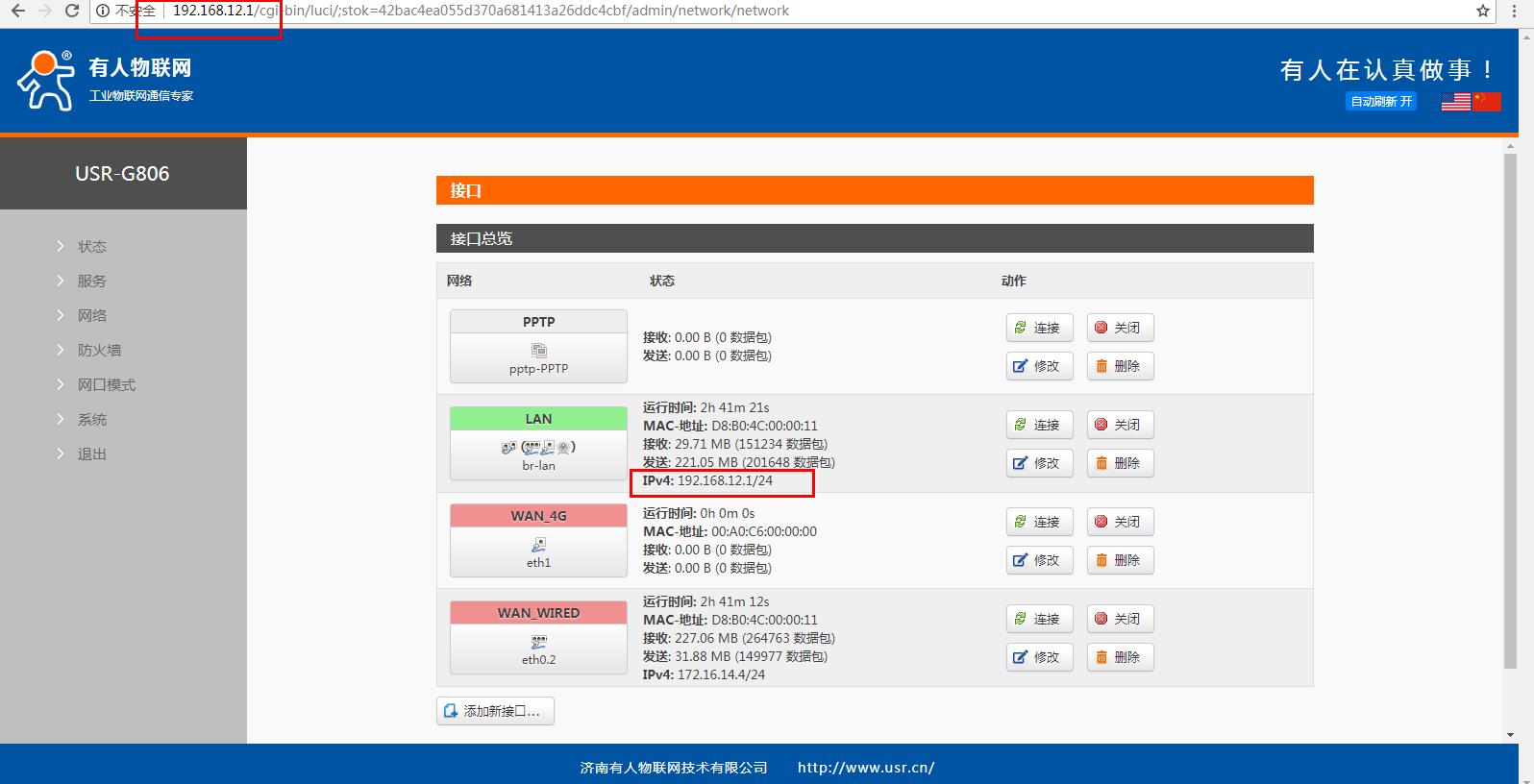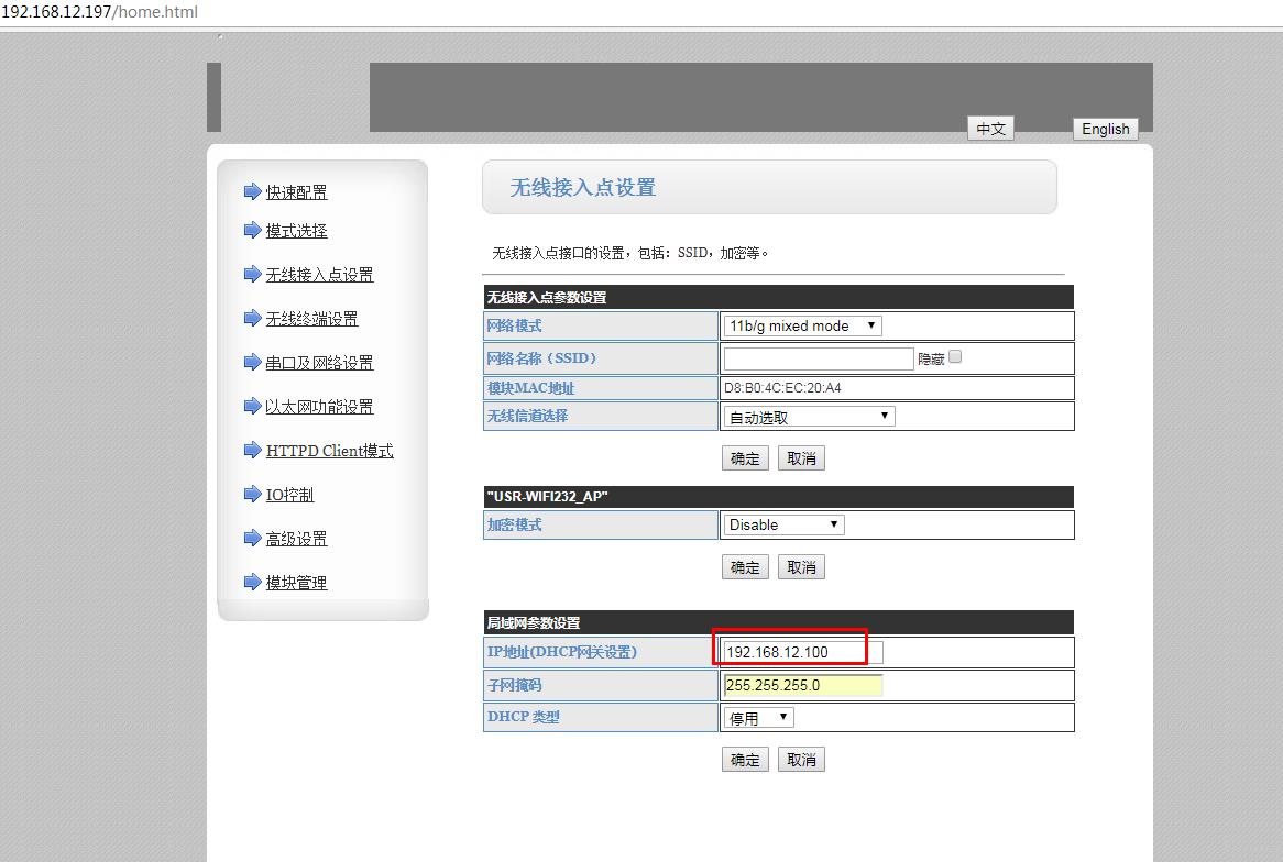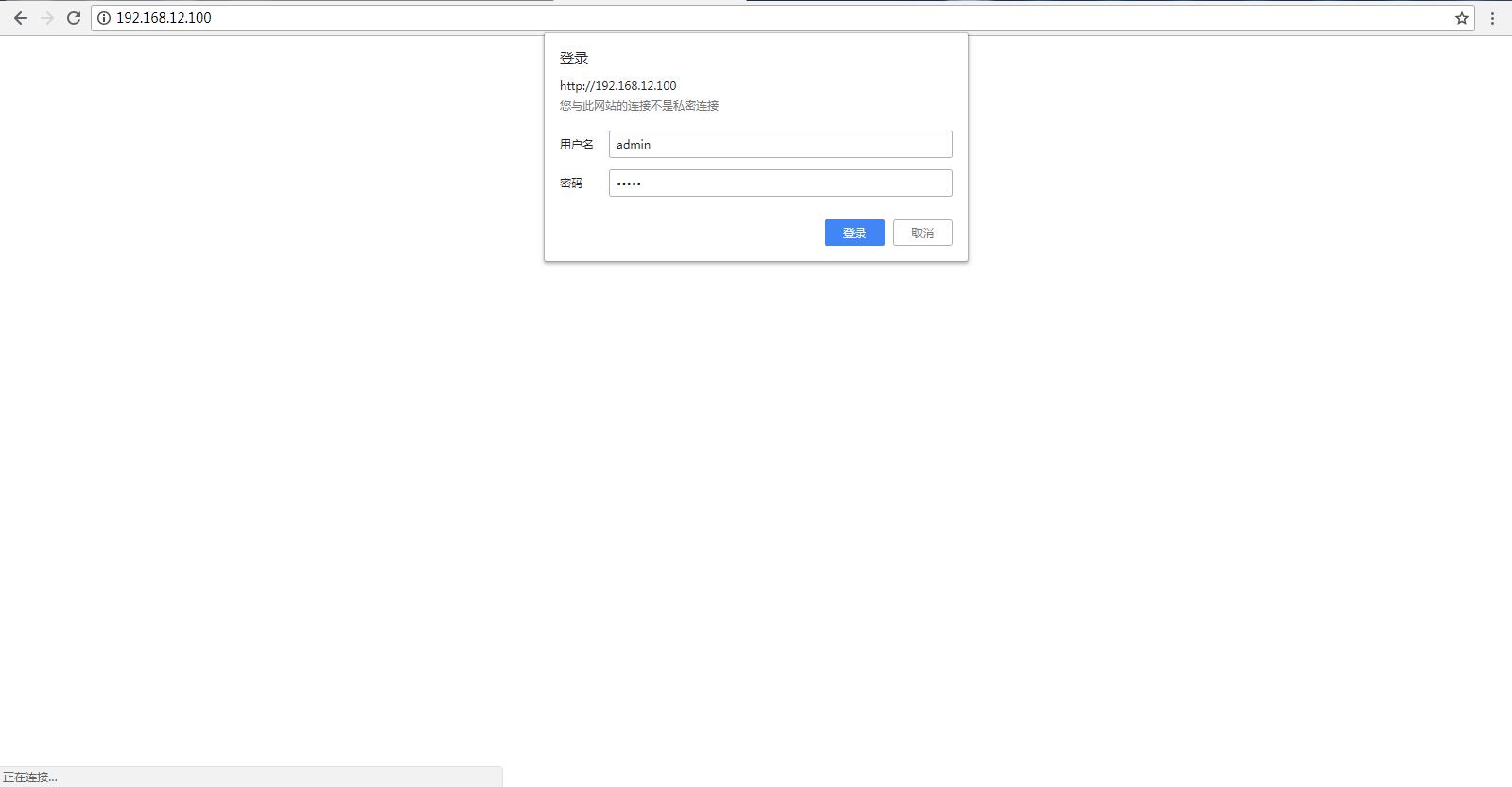 電腦連接路由器的wifi,電腦瀏覽器使用設(shè)置的Ip 192.168.12.100,登錄B2模塊的內(nèi)置網(wǎng)頁。