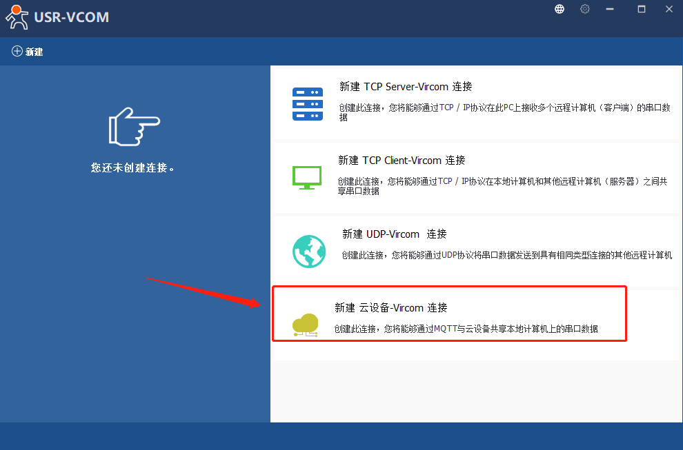 15、打開下載好的VCOM軟件,點擊 新建云設(shè)備.
