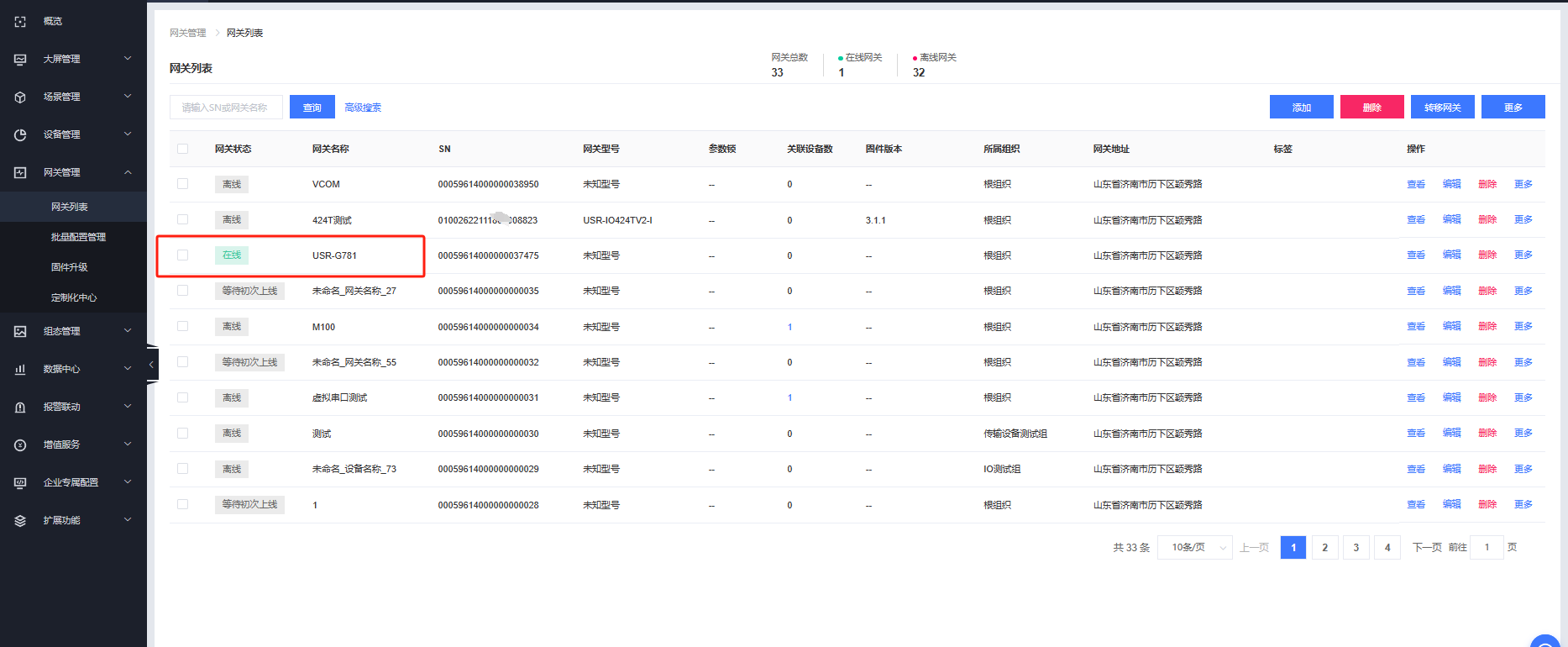 網(wǎng)關(guān)管理--網(wǎng)關(guān)列表--添加--單個添加