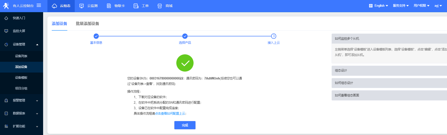 設(shè)備編號和密碼在有人云設(shè)備列表——查看——SN即設(shè)備編號