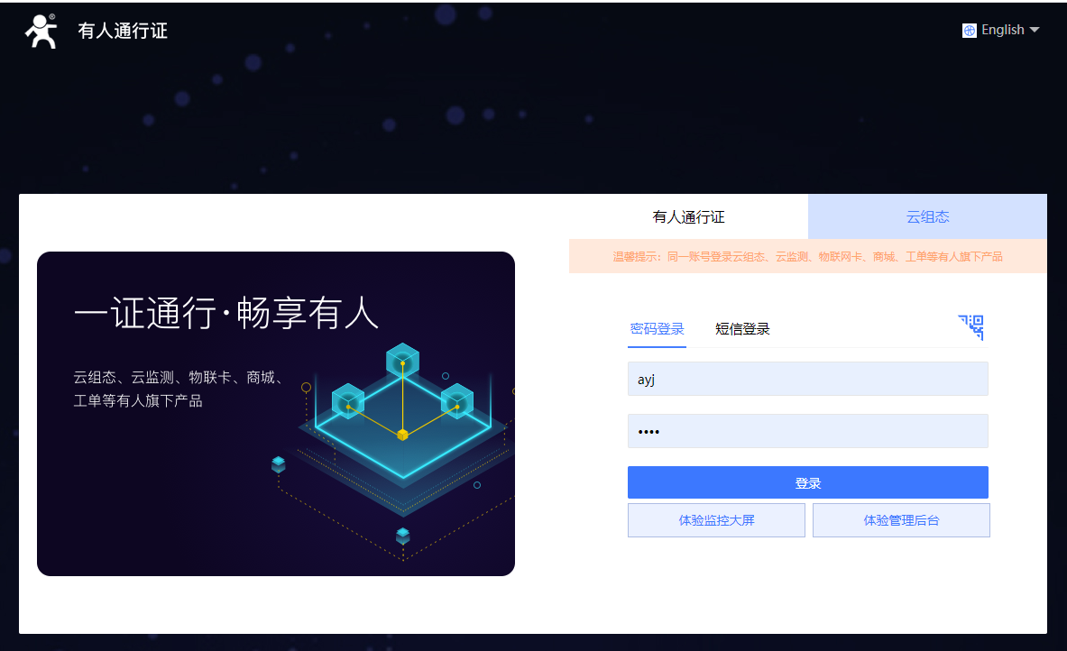 1、登錄有人云(如果沒有賬號先申請通行證,目前只能通過手機(jī)號來注冊通行證賬戶)