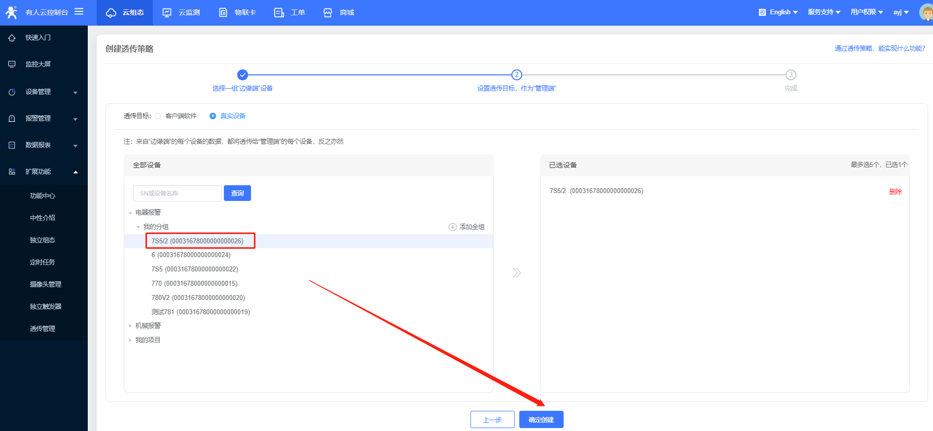 4、創(chuàng)建透傳策略