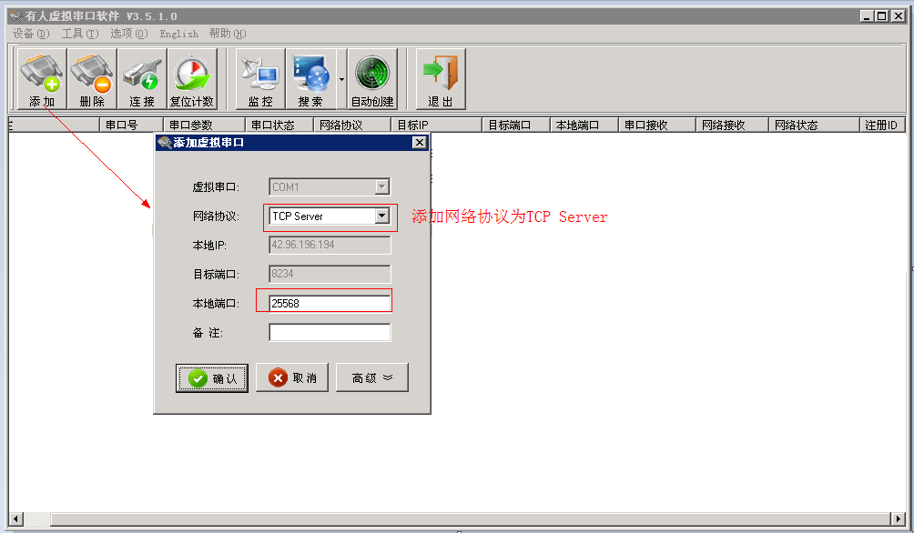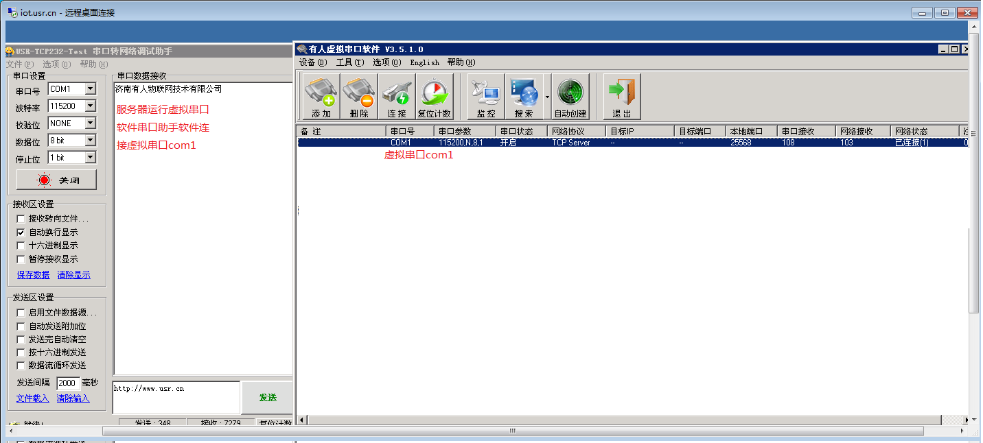 服務(wù)器中設(shè)置虛擬串口軟件和串口調(diào)試助手軟件;
