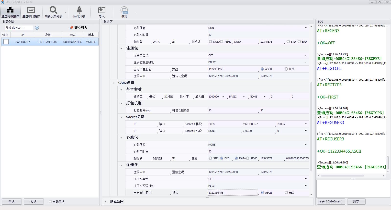 CAN2默認(rèn)是TCP server模式,本地端口20005