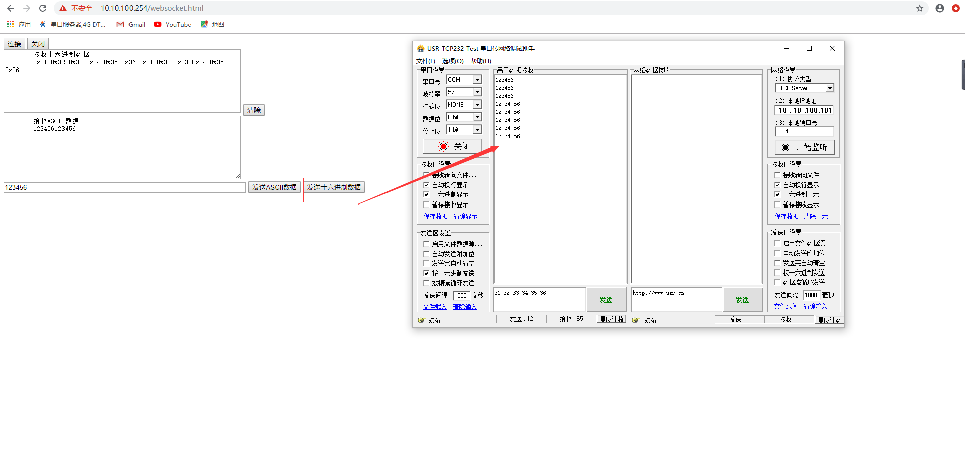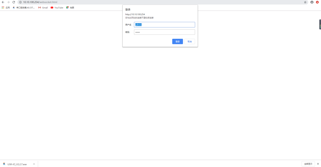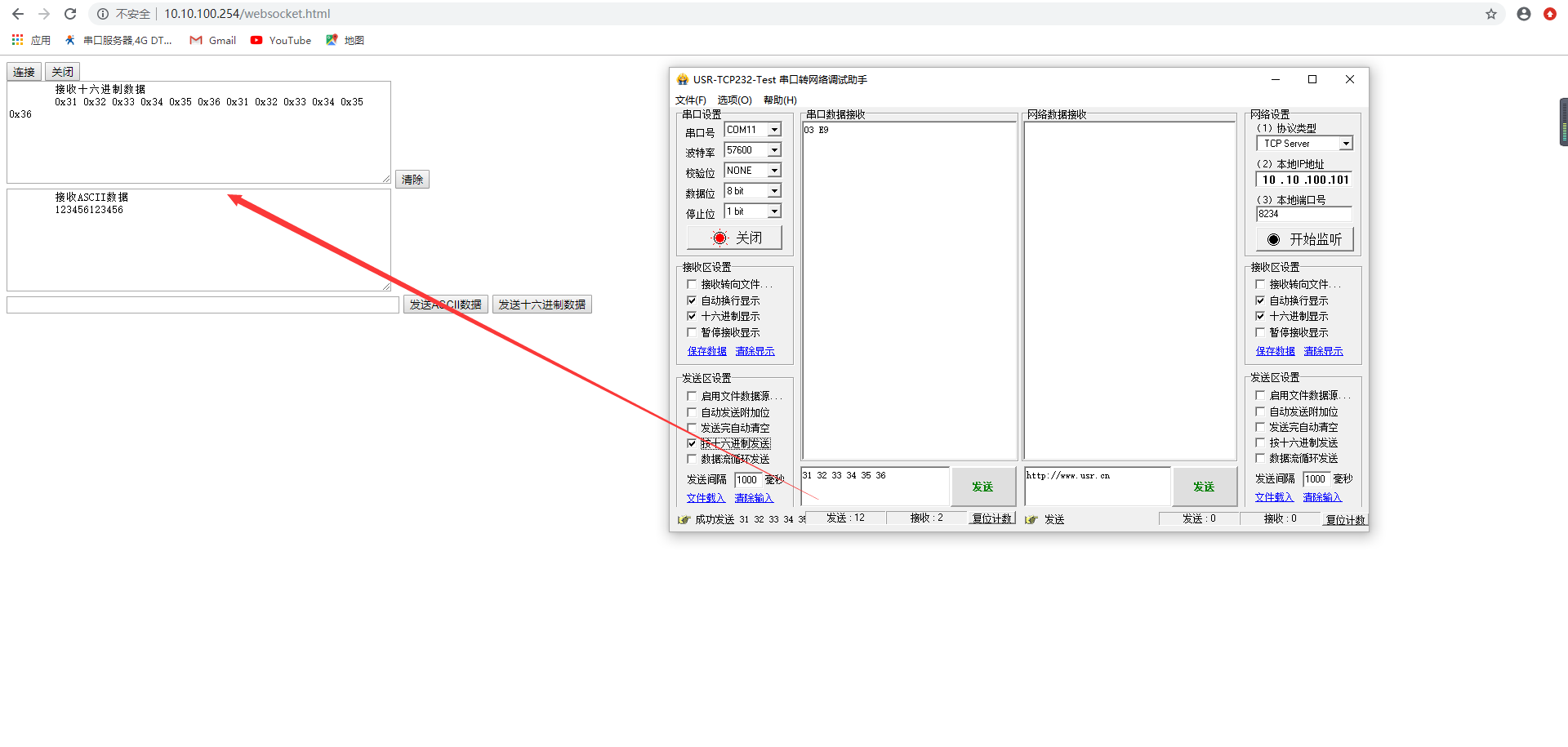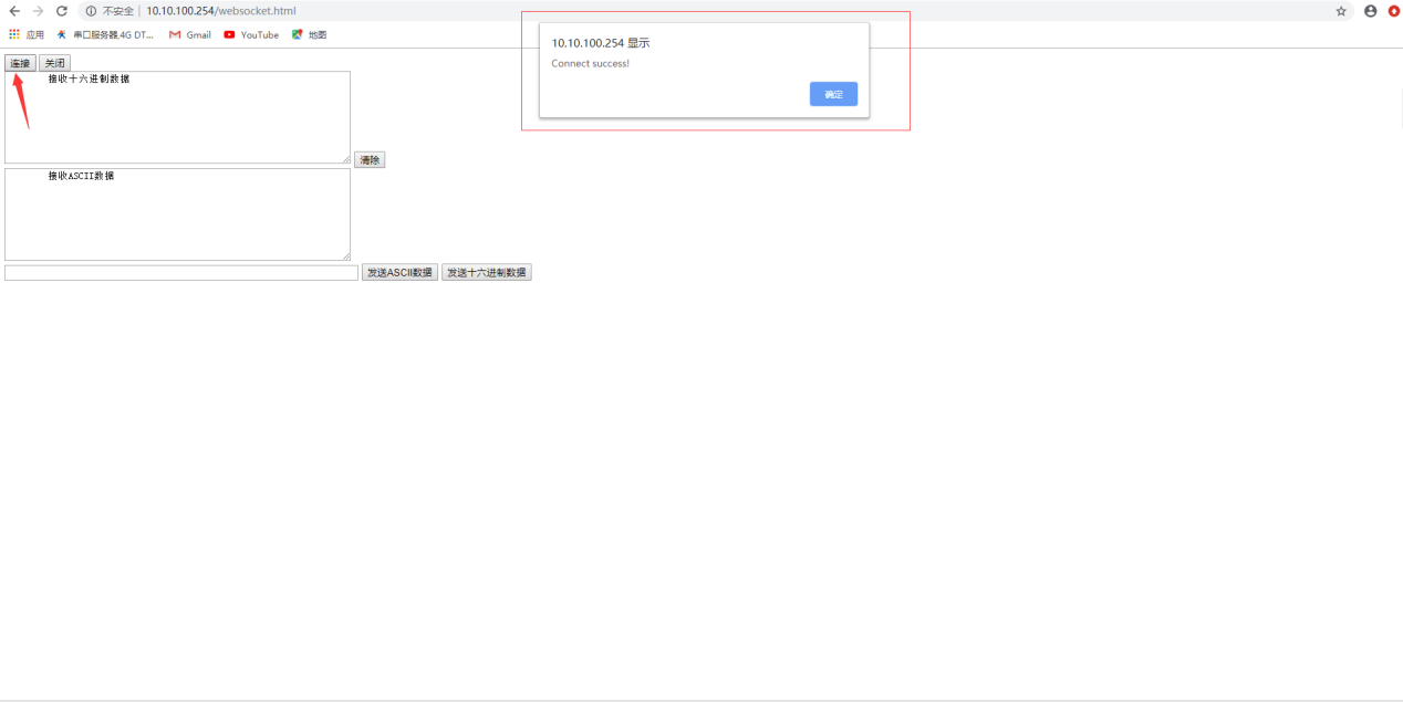 2.瀏覽器輸入10.10.100.254/websocket.htm,進入websocket頁面