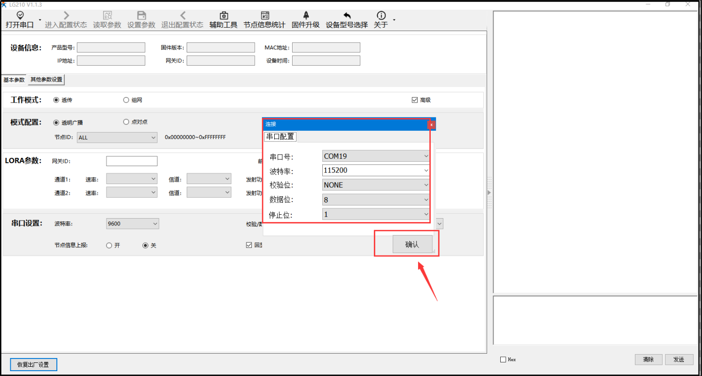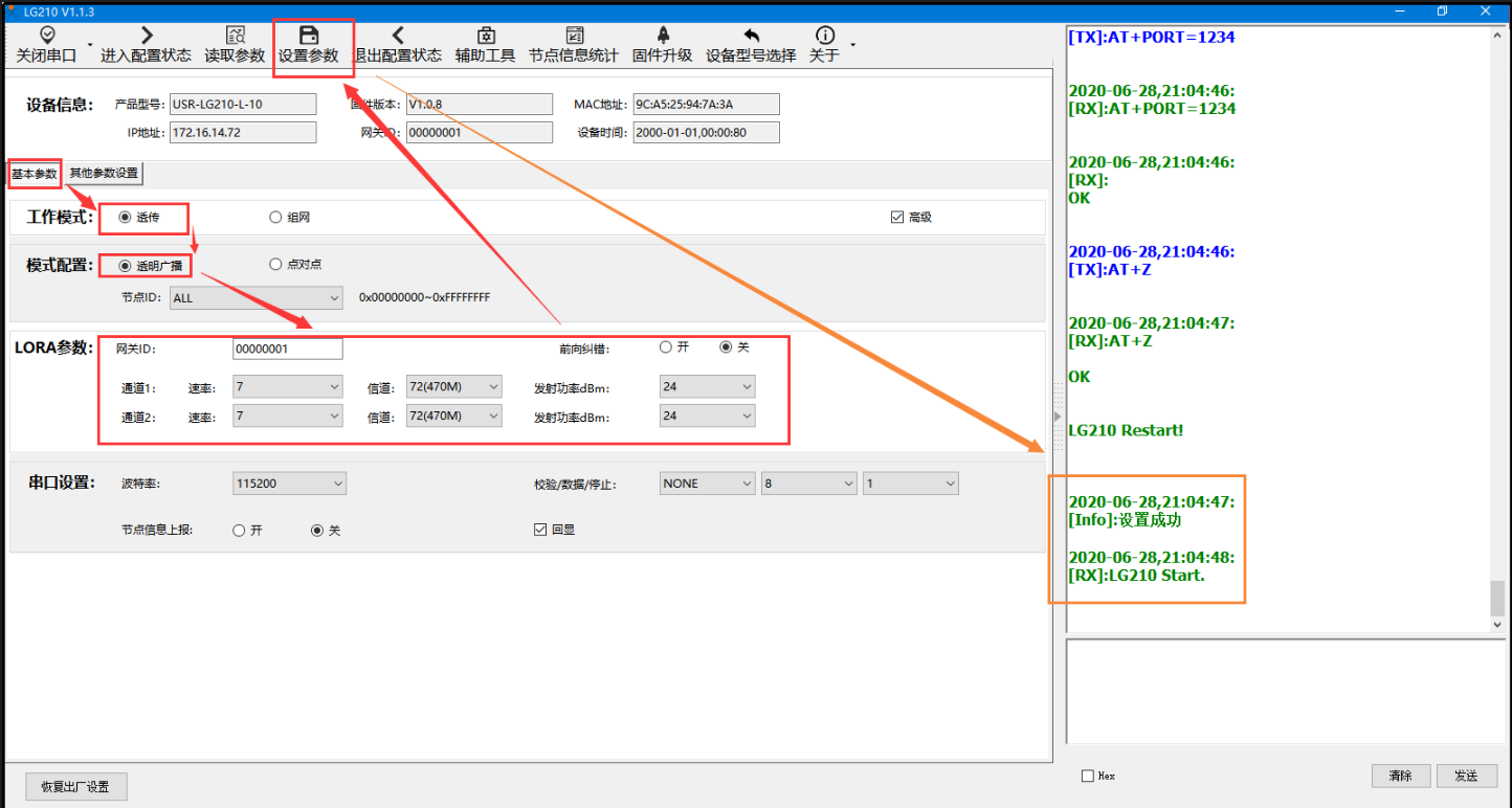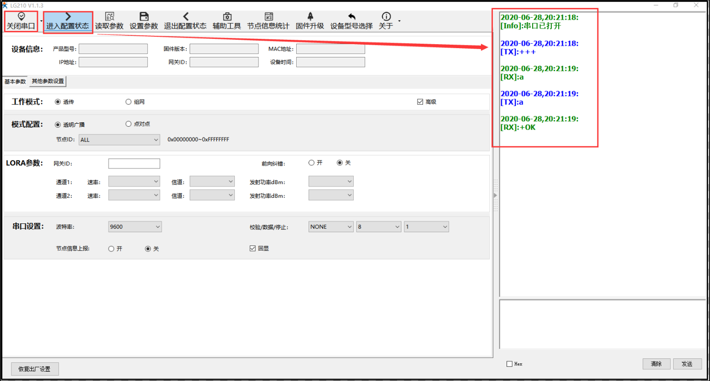 模式配置:“透明傳輸”,節(jié)點(diǎn)ID:“ALL”