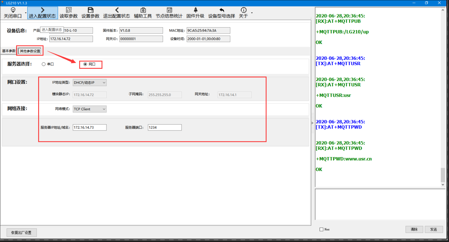 點(diǎn)擊“其他參數(shù)配置”,服務(wù)器選擇:“網(wǎng)口”。