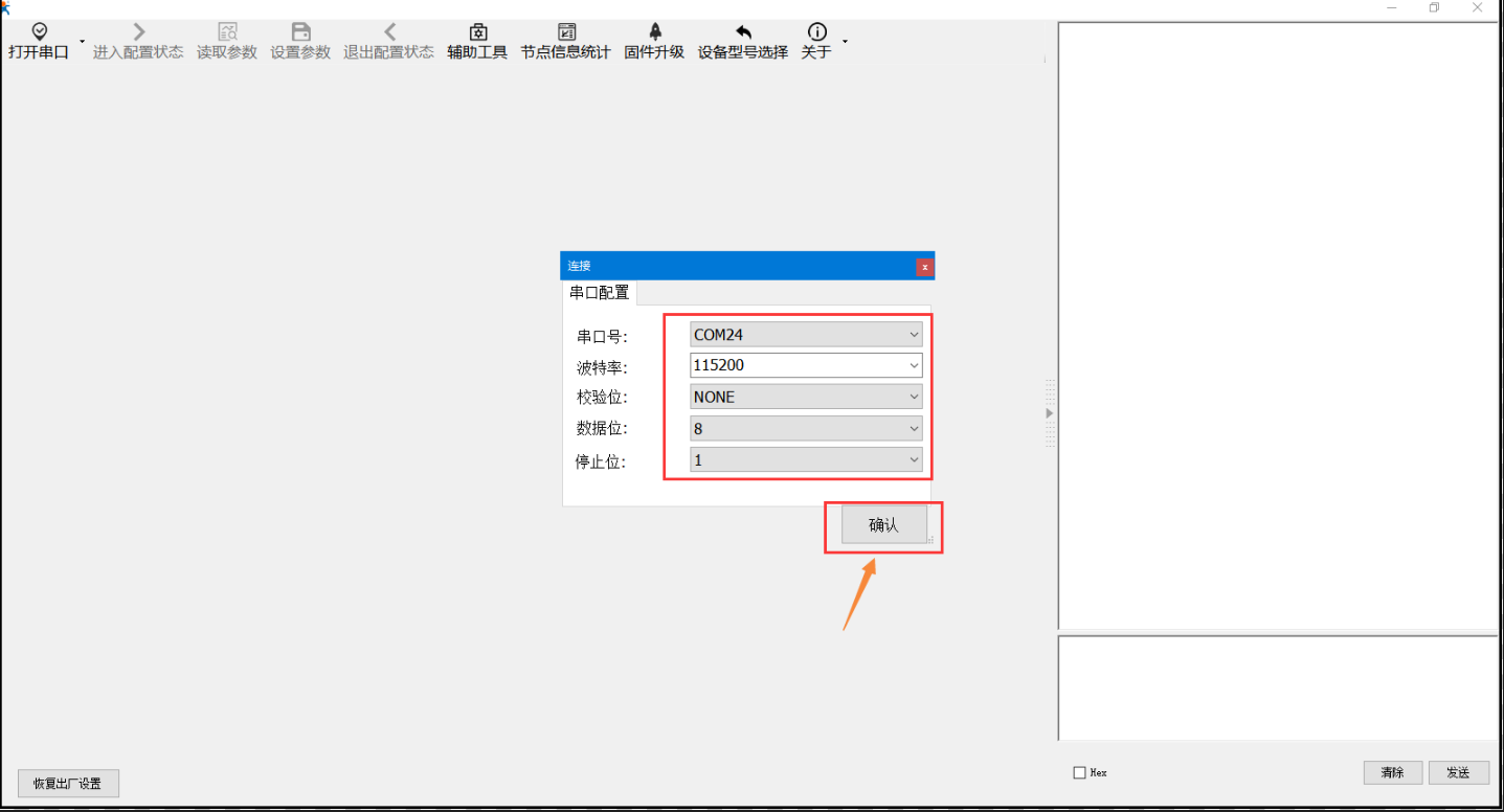 實(shí)際應(yīng)用時(shí),串口設(shè)置內(nèi)的波特率、校驗(yàn)位、數(shù)據(jù)位、停止需要配置為您206串口要要接的串口設(shè)備串口參數(shù),不然數(shù)據(jù)會(huì)是亂碼,本次案例為默認(rèn)參數(shù)未修改。 使用485串口線時(shí)流控配置為“485”,流控為485時(shí)也是可以使用232串口線通信的。
