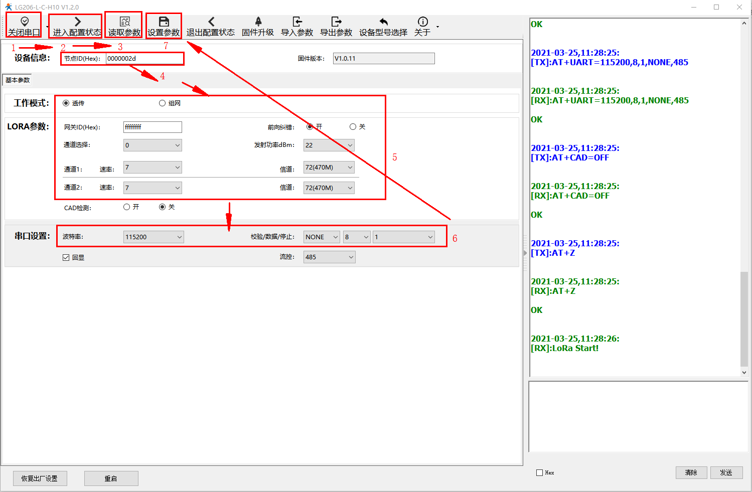 注意:206與210的lora天線不要相距太近,太近會(huì)造成干擾數(shù)據(jù)收發(fā)不正常。