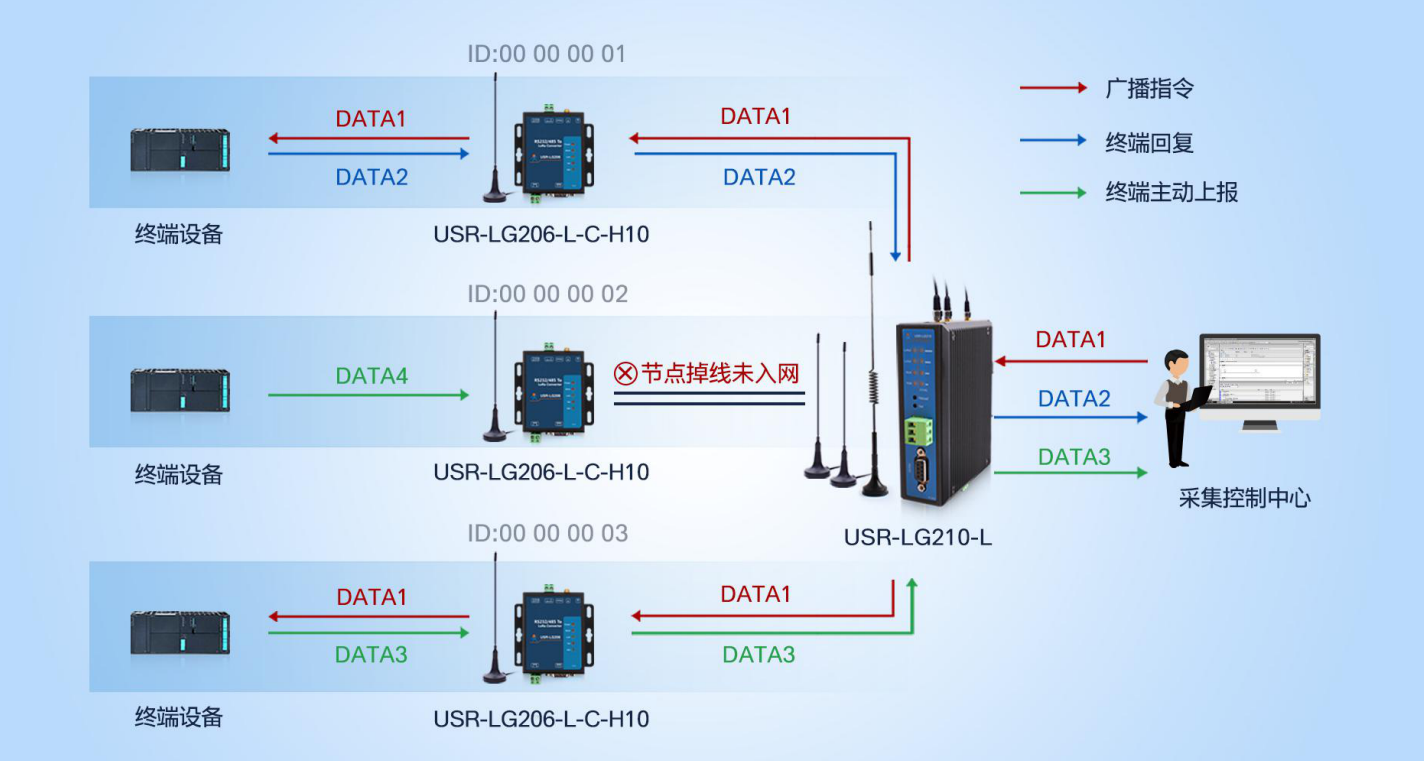 使用過程中出現(xiàn)速率一致信道不同的 USR-LG206-L-C-H10,收到了集中器發(fā)出的數(shù)據(jù)。