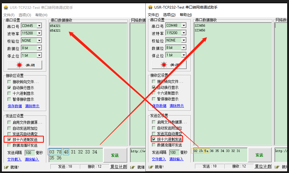 設(shè)備B向設(shè)備A發(fā)送數(shù)據(jù)(654321)則只需要按照 16 進(jìn)制發(fā)送(02 2b 5a 36 35 34 33 32 31)