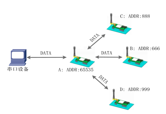 模塊工作在透傳狀態(tài),保證廣播發(fā)送的模塊的目標(biāo)地址為65535。