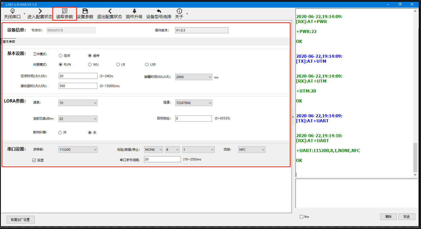 3:LoRa模塊WH-L101-L-p-H10參數(shù)設(shè)置