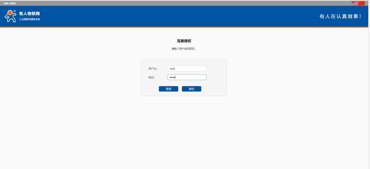 1、進(jìn)入內(nèi)置網(wǎng)頁,806默認(rèn)登錄用戶名密碼:root,root。