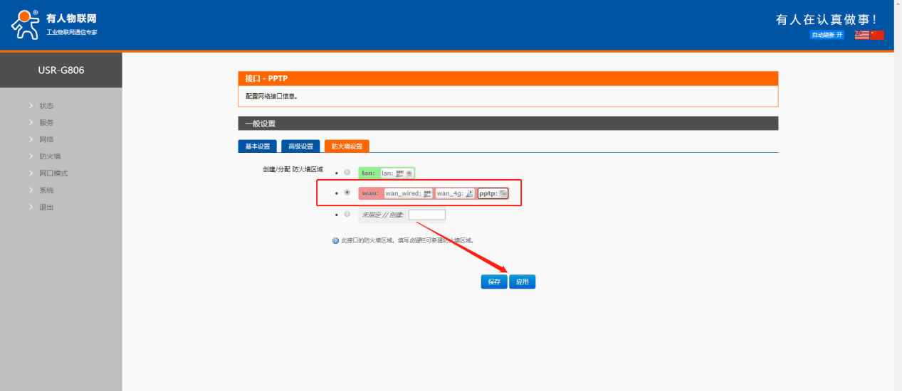 6. 設(shè)置參數(shù)無誤,保存應(yīng)用之后可以看到設(shè)備獲取到的VPN IP。在接口pptp位置可以看到,也可以進(jìn)入pptp這個接口查看。