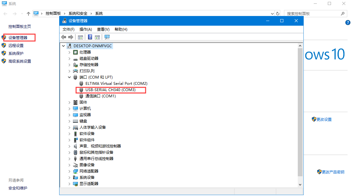 其中串口號(hào)可以在電腦的“設(shè)備管理器”中查看,見(jiàn)下圖;