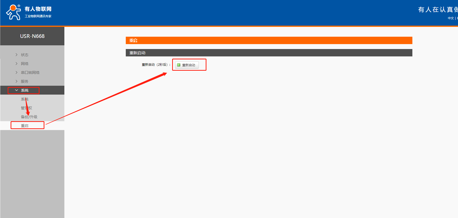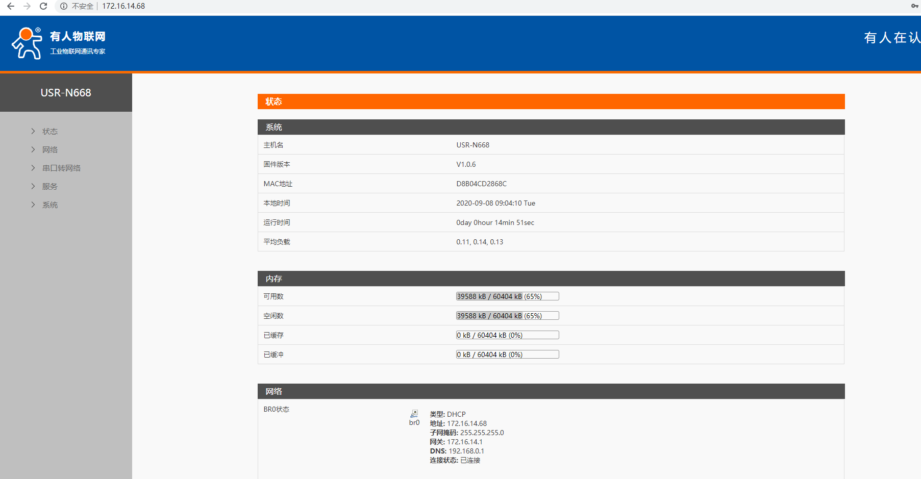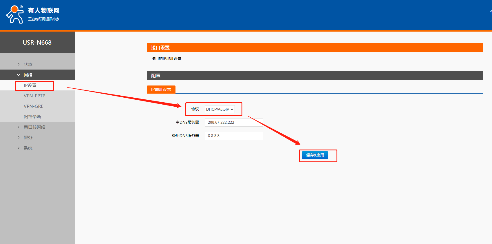 6. 完成重啟后,此時的N668使用的是路由器分配的IP,這時將電腦連接N668的網(wǎng)線連接同一路由器,使電腦與N668都使用路由器分配的IP,且都存在于同一網(wǎng)段??梢詮穆酚善髦蝎@取N668當(dāng)前IP,通過此IP進入內(nèi)置網(wǎng)頁,或者通過設(shè)置軟件搜索當(dāng)前N668IP。通過新IP進入內(nèi)置網(wǎng)頁。
