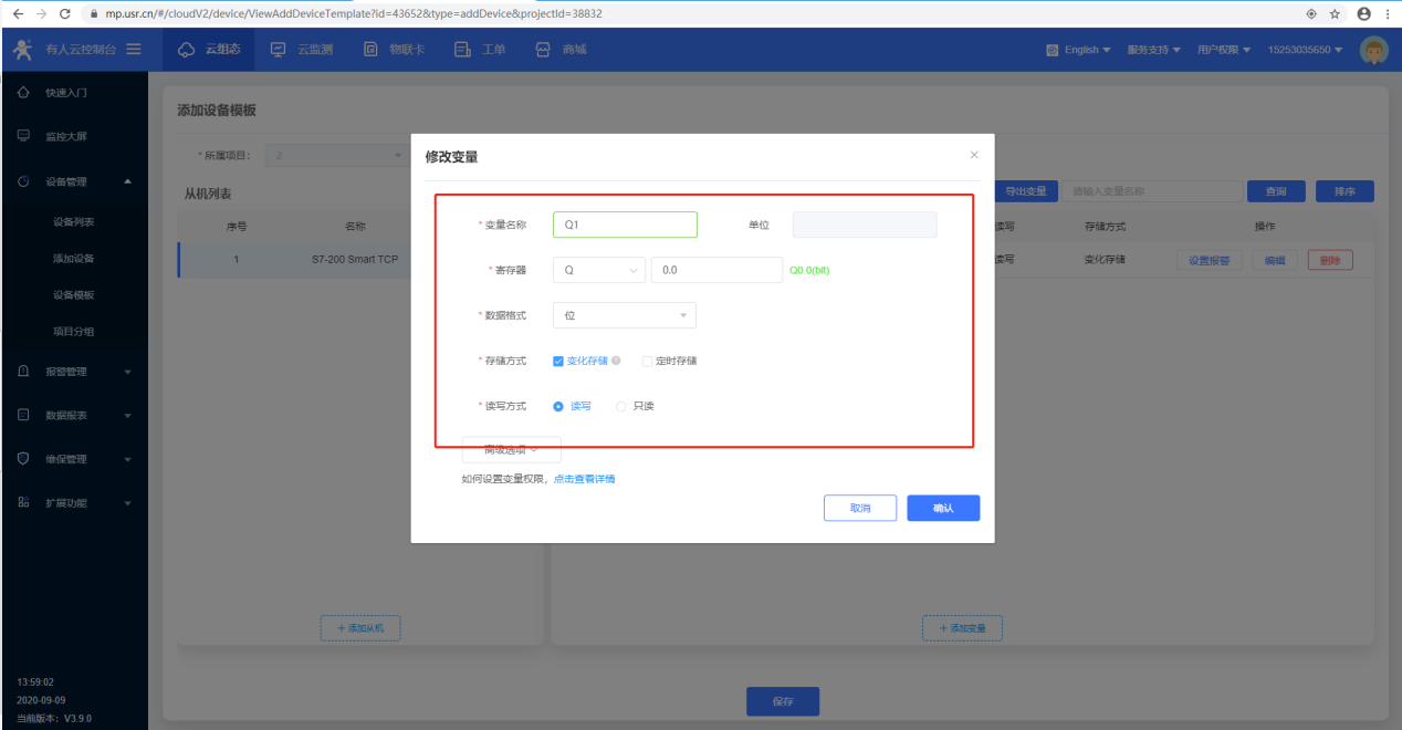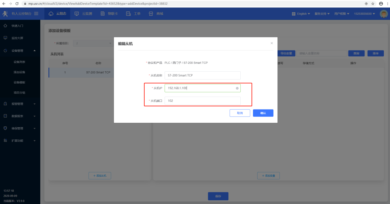 4.下一步填寫從機和變量,從機IP為PLC的IP,從機端口為PLC的端口