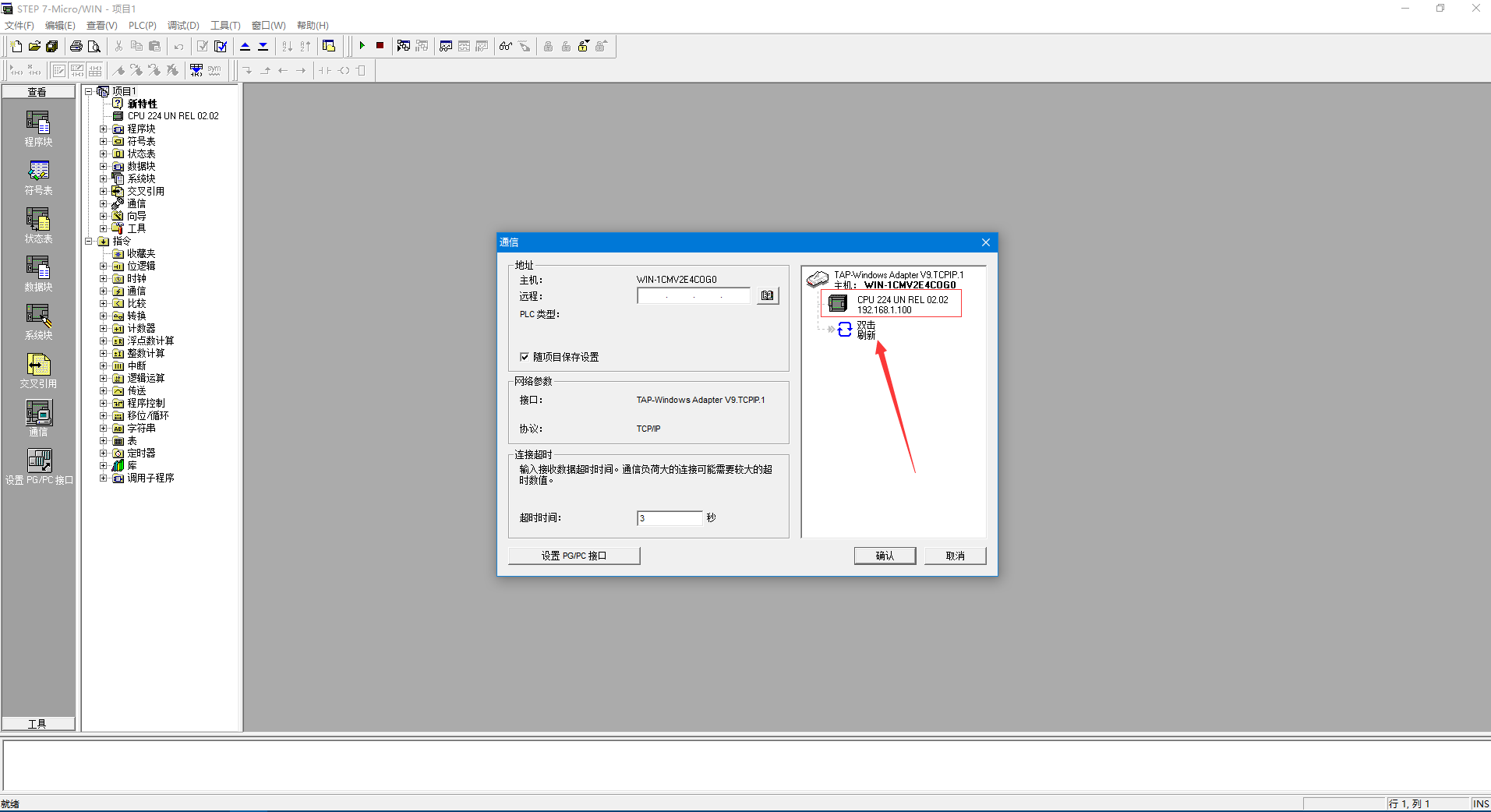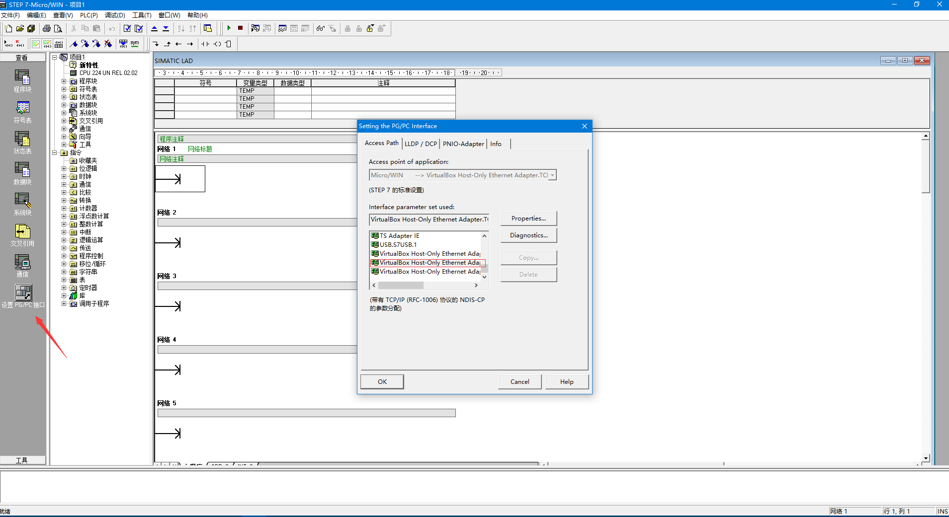 12.打開PLC100的上位機軟件,設(shè)置PG/PC接口,選擇虛擬網(wǎng)卡,點擊OK