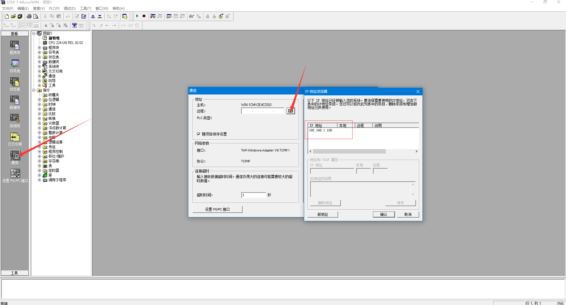 13.點擊通信,輸入PLC100的IP,雙擊刷新,選中刷新出的PLC