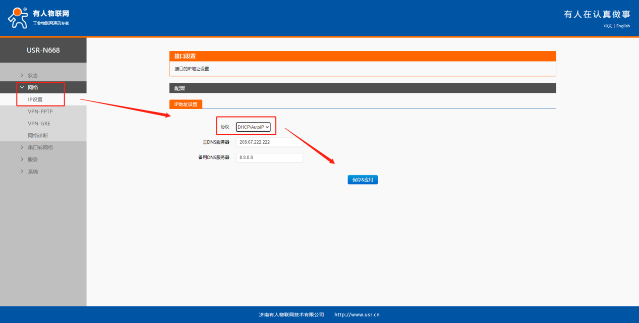 5、網(wǎng)絡(luò)IP設(shè)置中,設(shè)置為DHCP動態(tài)IP,然后系統(tǒng)頁面重啟設(shè)備,參數(shù)需要重啟生效。