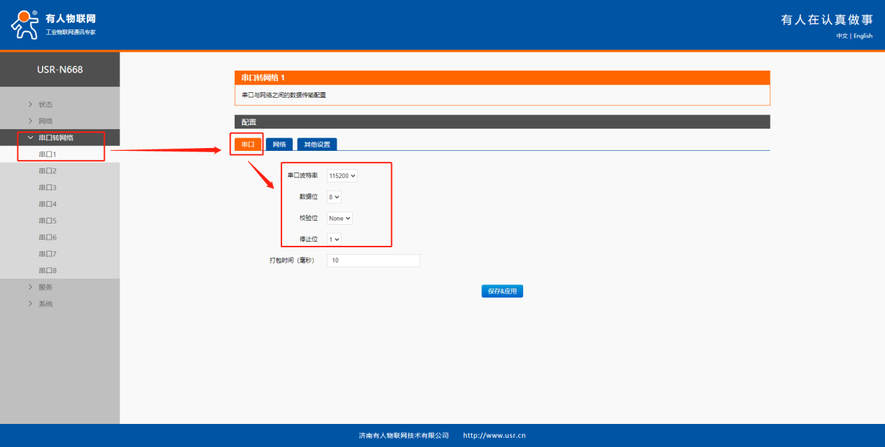 6、串口轉(zhuǎn)網(wǎng)絡(luò)確認(rèn)確認(rèn)串口參數(shù)是115200,N,8,1。