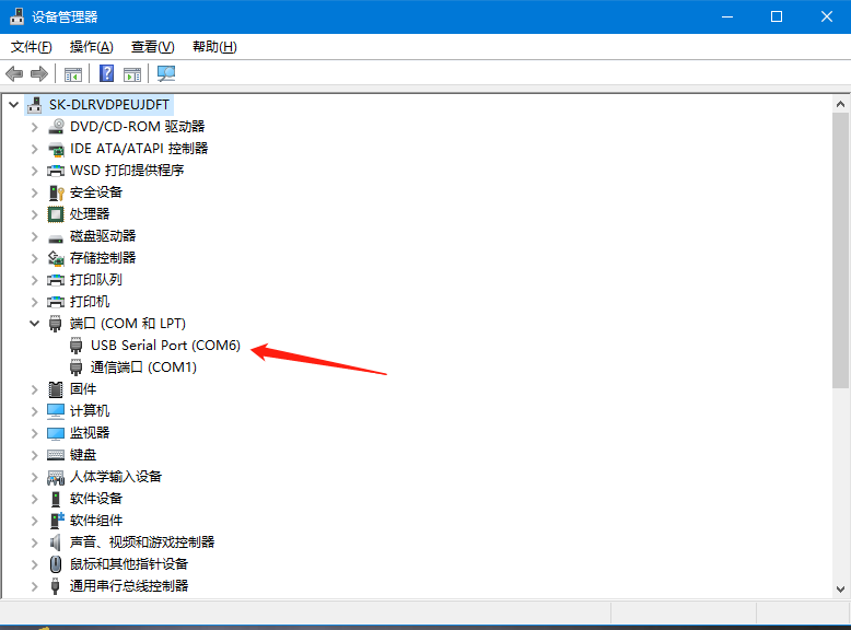 9、在電腦設(shè)備管理器查看設(shè)備直連電腦識(shí)別到的COM口。