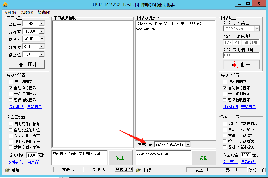 (2)測試說明:本測試連接的是我司的遠(yuǎn)程服務(wù)器,實(shí)現(xiàn)的功能是在服務(wù)器端查詢或更改模塊的參數(shù)