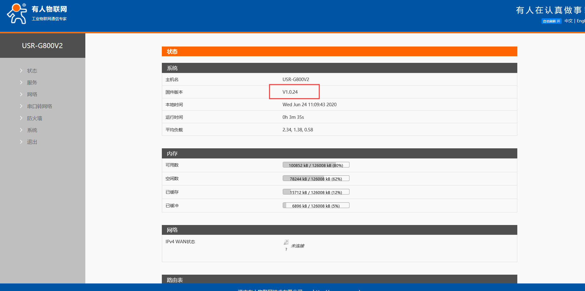 1、確認工業(yè)路由器是否為有人云版,可以看一下設備貼膜,或內(nèi)置網(wǎng)頁固件版本號,1.0.24版本及以上為有人云版本。進入內(nèi)置網(wǎng)頁步驟看一下第二部分中的PC通過路由器上網(wǎng)案例