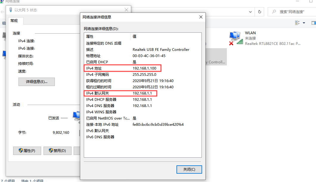 2.雙擊該網(wǎng)卡,點(diǎn)擊詳細(xì)信息,可以查看電腦獲取到的IP以及網(wǎng)關(guān);