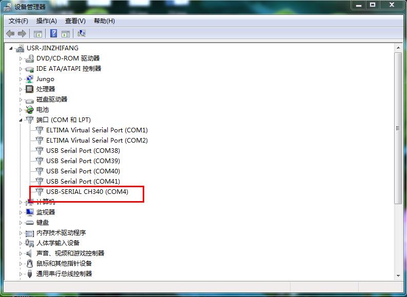用USB-RS232串口線接電腦和USR-TCP232-302的232串口。右擊電腦桌面的計(jì)算機(jī),點(diǎn)擊設(shè)備管理器,點(diǎn)開端口,確認(rèn)USR-RS232串口線的COM口號(hào)。