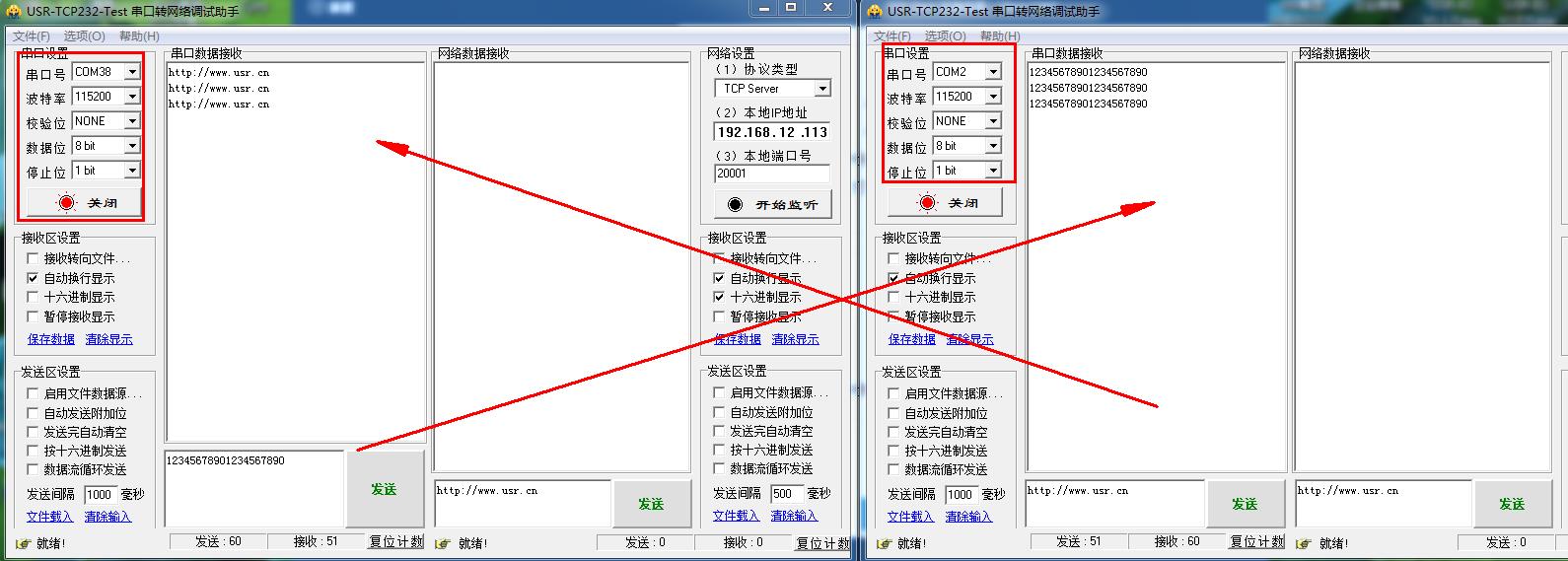 用M0配置軟件搜索設(shè)備,設(shè)置參數(shù)之后,2個(gè)USR-TCP232-302網(wǎng)線直連,或者都接同一個(gè)交換機(jī)。
