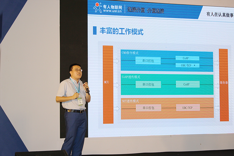 有人旗下模塊子公司研發(fā)經(jīng)理王玉鋒現(xiàn)場講解NB模組