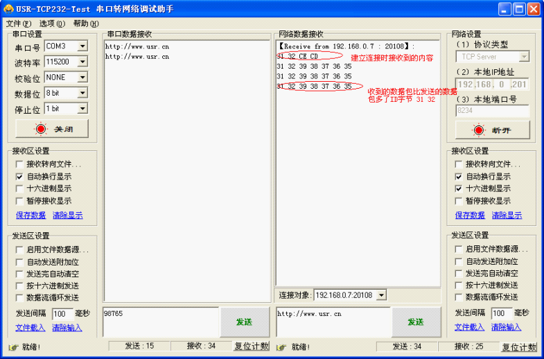 正常收到數(shù)據(jù)會(huì)以地址碼開始,后面加數(shù)據(jù),數(shù)據(jù)包長(zhǎng)度不能超過(guò)400個(gè)字節(jié),否則此功能會(huì)被打亂。