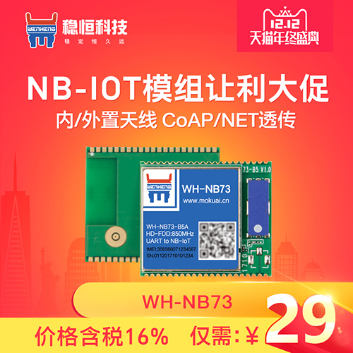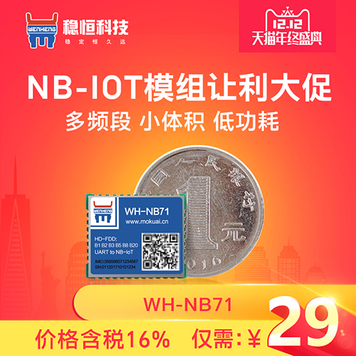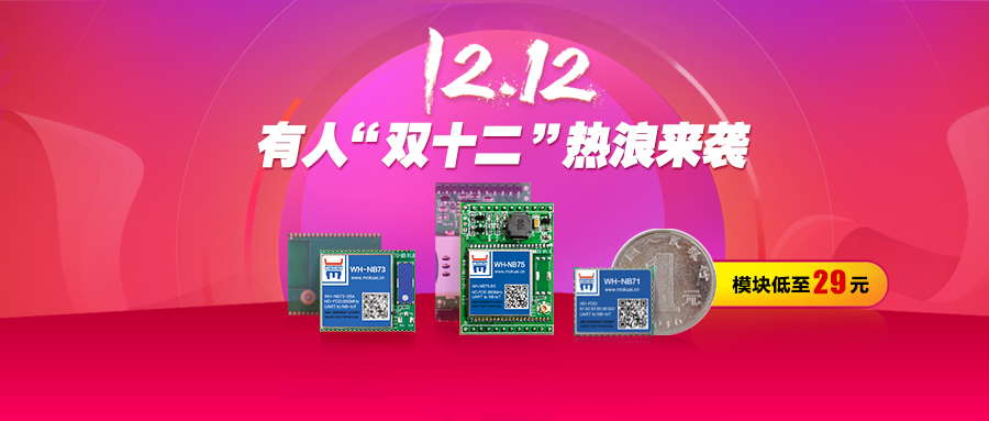 有人物聯(lián)網(wǎng)在本次“雙十二”狂歡盛宴中,推出NB-IoT模組讓利大促活動,單品最高直降20元。