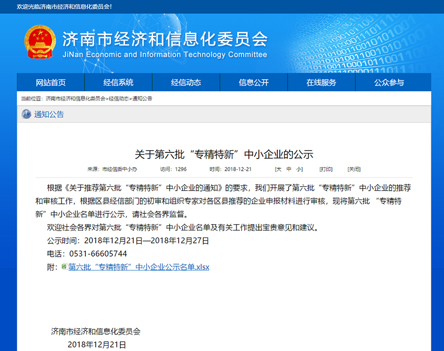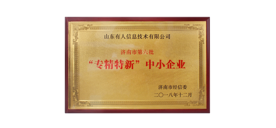 12月21日,有人物聯(lián)網(wǎng)榮獲由濟(jì)南市經(jīng)濟(jì)和信息化委員會(huì)評(píng)選的“第六批專精特新中小企業(yè)”稱號(hào)。
