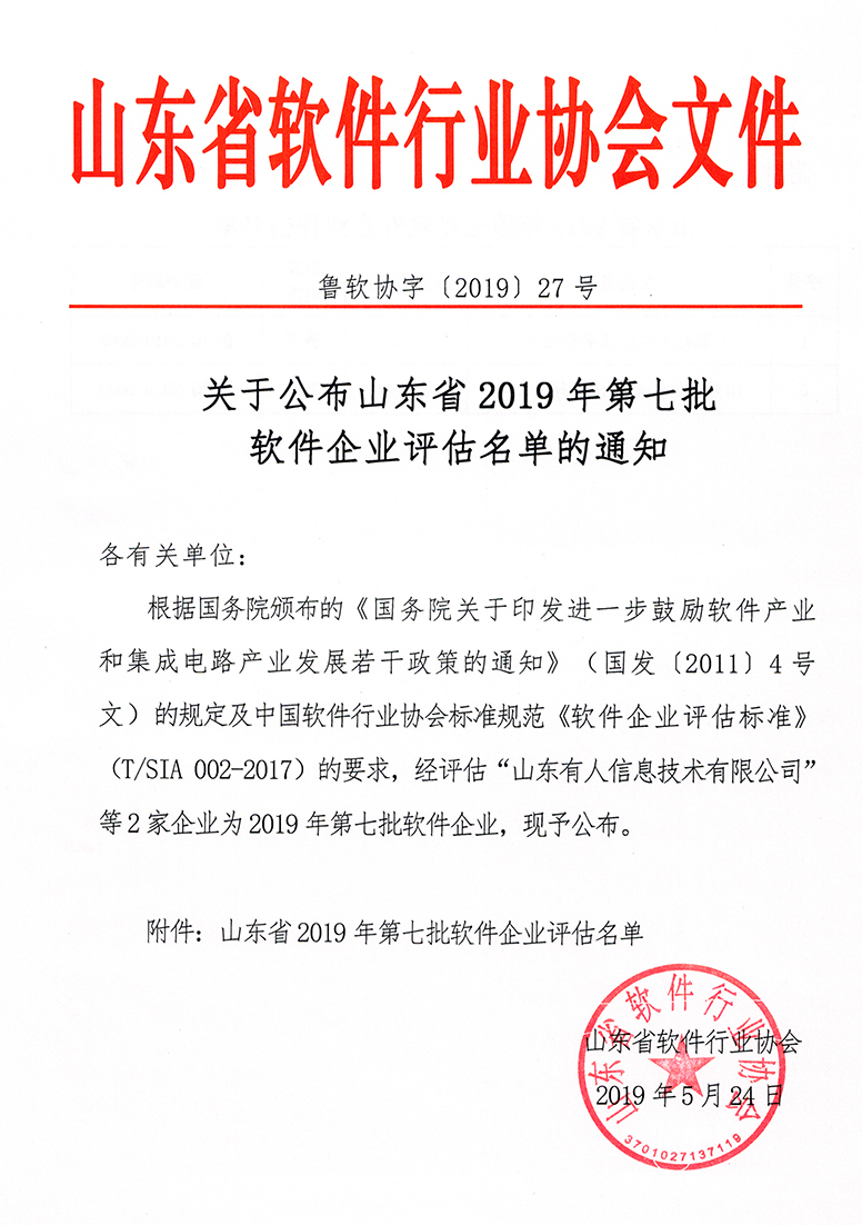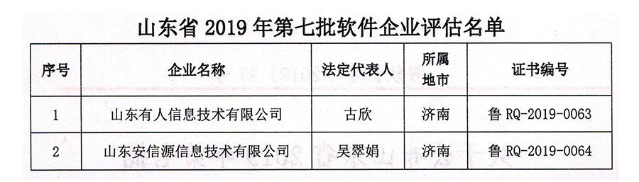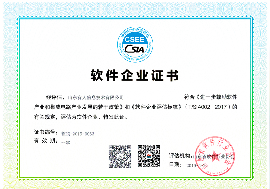 在“山東省2019年第七批軟件企業(yè)”評估中,有人物聯(lián)網(wǎng)被山東省軟件行業(yè)協(xié)會認證為軟件企業(yè)。聯(lián)想到之前已經(jīng)獲得的軟件產(chǎn)品認證,這也意味著,有人正式成為“雙軟企業(yè)”。