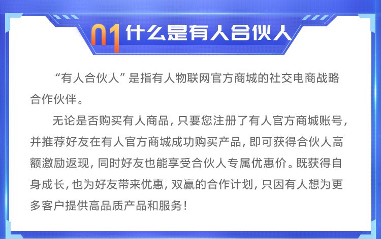 為答謝老客戶一直以來(lái)對(duì)有人品牌的支持與信賴,有人物聯(lián)網(wǎng)特此推出“合伙人”(點(diǎn)擊藍(lán)字快速參加)活動(dòng),希望通過(guò)本活動(dòng),為廣大老客戶及身邊朋友帶來(lái)“雙重福利”。