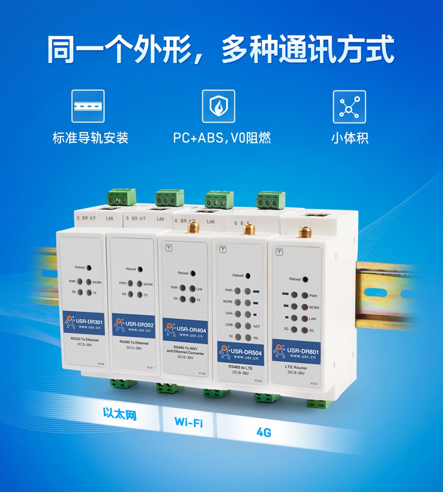 產(chǎn)品包含串口服務(wù)器、4G DTU、4G工業(yè)路由器等不同種類;同一個外形,多種通訊方式,支持以太網(wǎng)、Wi-Fi、4G聯(lián)網(wǎng);自帶35mm導(dǎo)軌卡扣?!奥槿鸽m小,五臟俱全”,適合所有導(dǎo)軌式場景應(yīng)用。