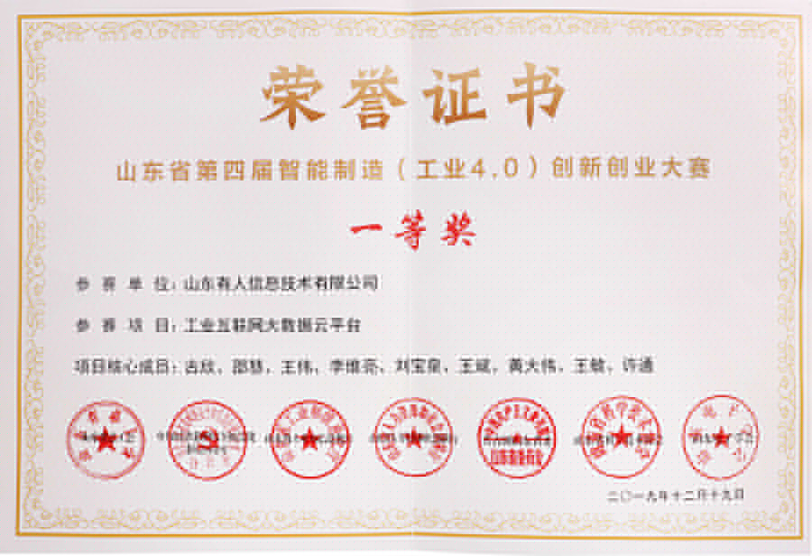 12月13日,山東省第四屆智能制造(工業(yè)4.0)創(chuàng)新創(chuàng)業(yè)大賽在東營落下帷幕。有人物聯(lián)網(wǎng)在本次大賽中表現(xiàn)出色,所申報的“工業(yè)互聯(lián)網(wǎng)大數(shù)據(jù)云平臺”項目,一舉奪得大賽一等獎。