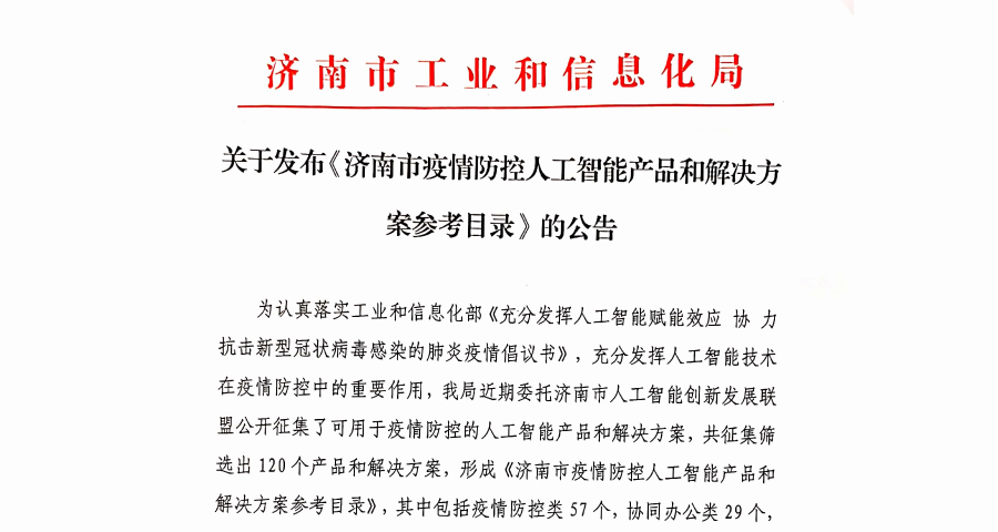 昨日,濟(jì)南市工業(yè)和信息化局印發(fā)“關(guān)于發(fā)布《濟(jì)南市疫情防控人工智能產(chǎn)品和解決方案參考目錄的公告》”,有人物聯(lián)網(wǎng)旗下云服務(wù)產(chǎn)品“有人云”入選該目錄。