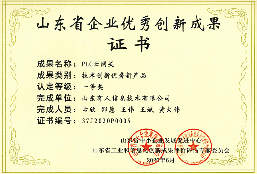 根據(jù)《關(guān)于開展全省民營企業(yè)優(yōu)秀創(chuàng)新成果認定推廣工作的通知》要求,山東省中小企業(yè)發(fā)展促進中心聯(lián)合有關(guān)機構(gòu),在企業(yè)自愿申報和有關(guān)單位推薦的基礎(chǔ)上,經(jīng)專家評審、公示和異議復(fù)核,確定認定山東有人信息技術(shù)有限公司完成的“PLC云網(wǎng)關(guān)”等572個技術(shù)創(chuàng)新項目為2020年全省首批重點推廣優(yōu)秀創(chuàng)新成果,納入全省民營企業(yè)創(chuàng)新項目庫統(tǒng)一管理,在全省宣傳推廣。