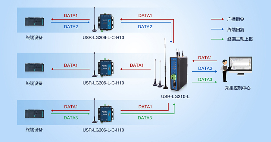 串口設(shè)備與串口設(shè)備之間通過(guò)兩個(gè)lora終端設(shè)備進(jìn)行點(diǎn)對(duì)點(diǎn)傳輸,無(wú)需任何數(shù)據(jù)傳輸協(xié)議。